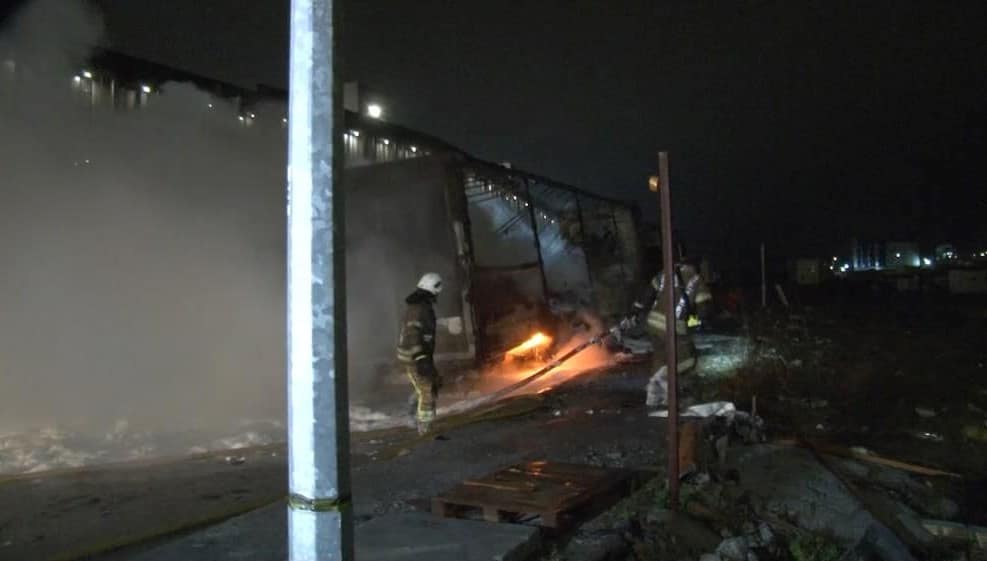 İstanbul Arnavutkör’deki Sanayi Sitesinde, Gece Park Halindeki Bir Tir’da Şimdi Bilinmeyen Birenle Yangın çavkti.