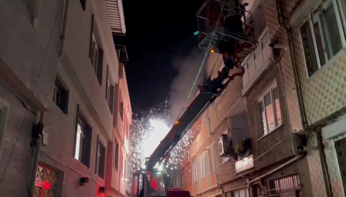 Yangına Müdahale Eden Takmlarelerin Ökerin, Sokakta Bulunan Elektik Sezirin. Kivilcim Çikaran Teller Sokoğa Aydinlaten, Olay Sokakta Panine Yol Akthe. Yangın, Itfaiye Gruplarin MüDahalesiyle Denetim Alnana Airinarak Söndür.